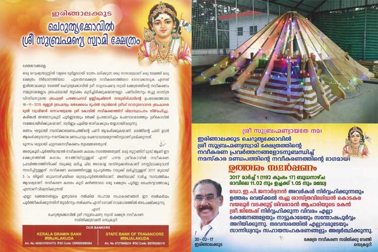 We, behalf of the Muruka devotees of Irinjalakuda, request to champion the divine cause divine reinforcement for becoming apt to receive the blessing of Lord Muruka. |